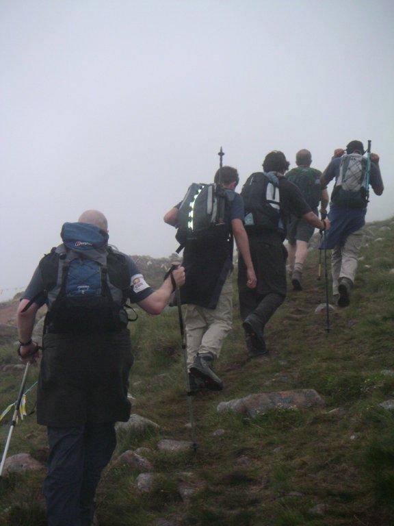 10:30 Amazingly, we set off only half an hour late, which we put down to our strategy of telling Rik an earlier time than the rest of us. We all assembled in Wembley, because there was a tube station, but also because that was where we were picking the minibus, that would be our base camp for the next 3 days, up. I felt very self-conscious on the way as it was rush hour and you don’t see many overloaded skinhead hikers crossing London at that time. Skinhead ? Yes, having received pledges of more than £1,000 I now had to shave my head, and although I could have done this after the challenge, on the spur of the moment I did it last night. Hey, at least it helped get me in the mood. Although, having seen the typical temperatures in Scotland, and knowing that it falls one degree for every 150m height gain, I suspect I’m going to be cold.