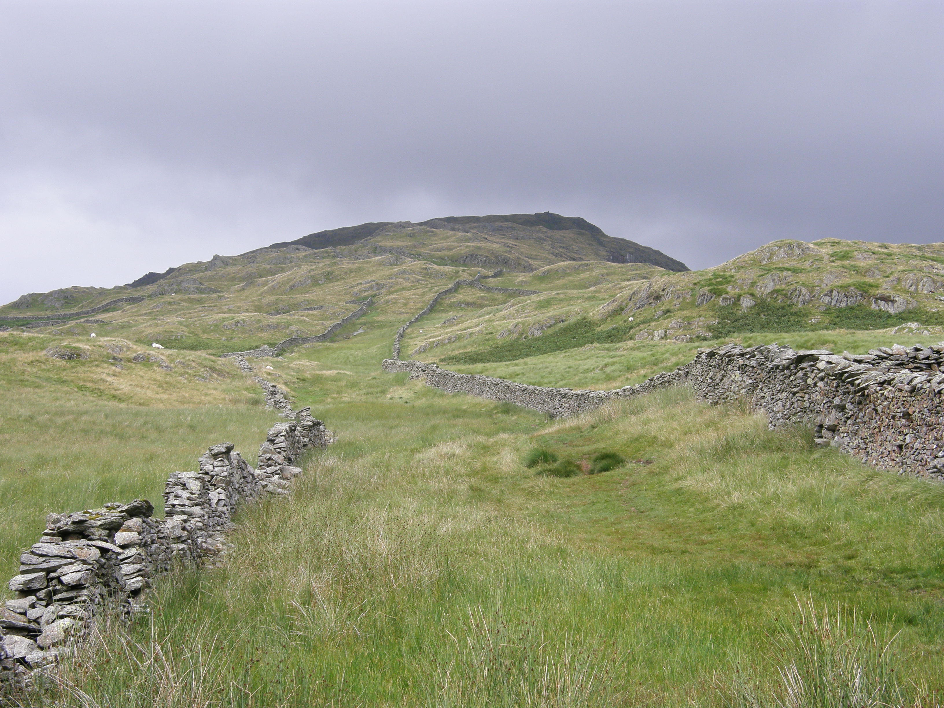 The ridge-route to the top of Red Screes runs for much of its lower portion between two dry stone walls which channel and guide you onwards. It’s a pleasant stroll gaining height gradually and ideal as a walk to warm the legs up on the first day of a walking trip.