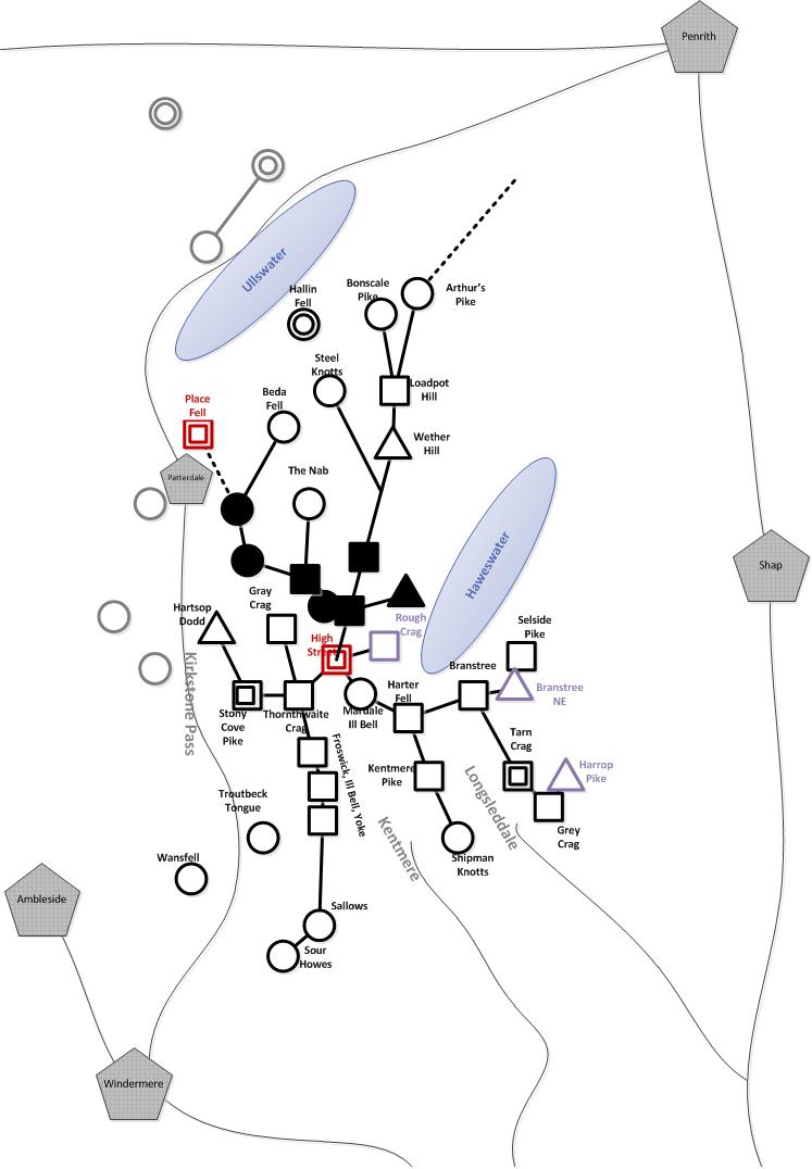 Interesting problem.. With the exception of two of these fells I have done them all and the thought of doing them in five days sleeping out would not fill me with enthusiasm..