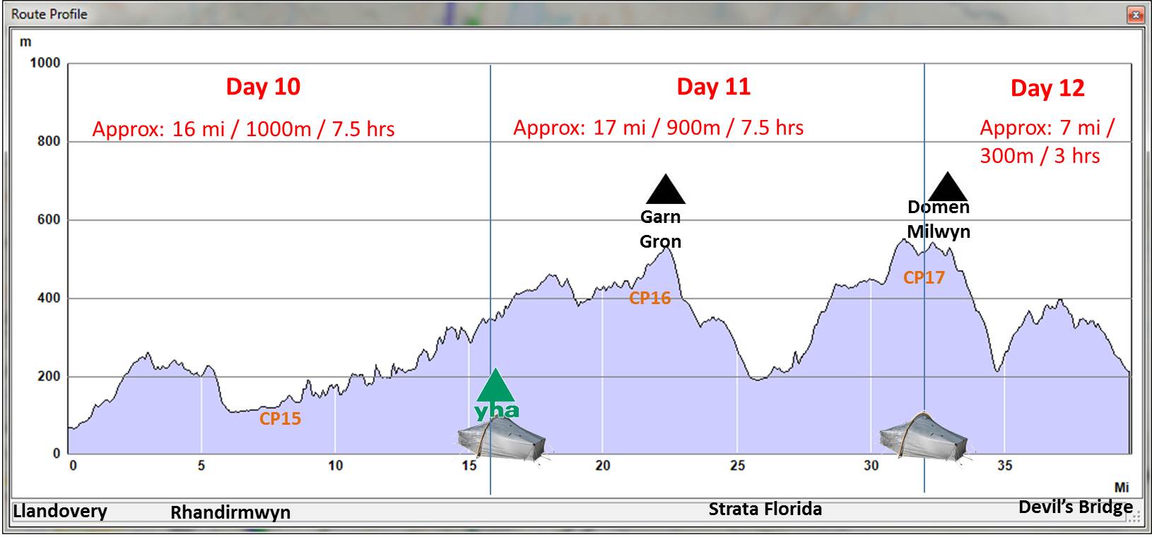 Stage 3 is short one, but that’s largely because I’ve chosen start and end points with obvious escapes – in the case of Devil’s Bridge the tourist train out to Aberystwyth, which clearly wouldn’t be cheap but if I needed to bail then that’s an obvious route. In reality, stages 3 and 4 really combine to make one normal size stage, but I like having more smaller stages as this will help mentally if it gets tough. Knowing it’s only another day and a bit to go is much better than knowing you’ve got 3 or 4 days left before the next staging post.