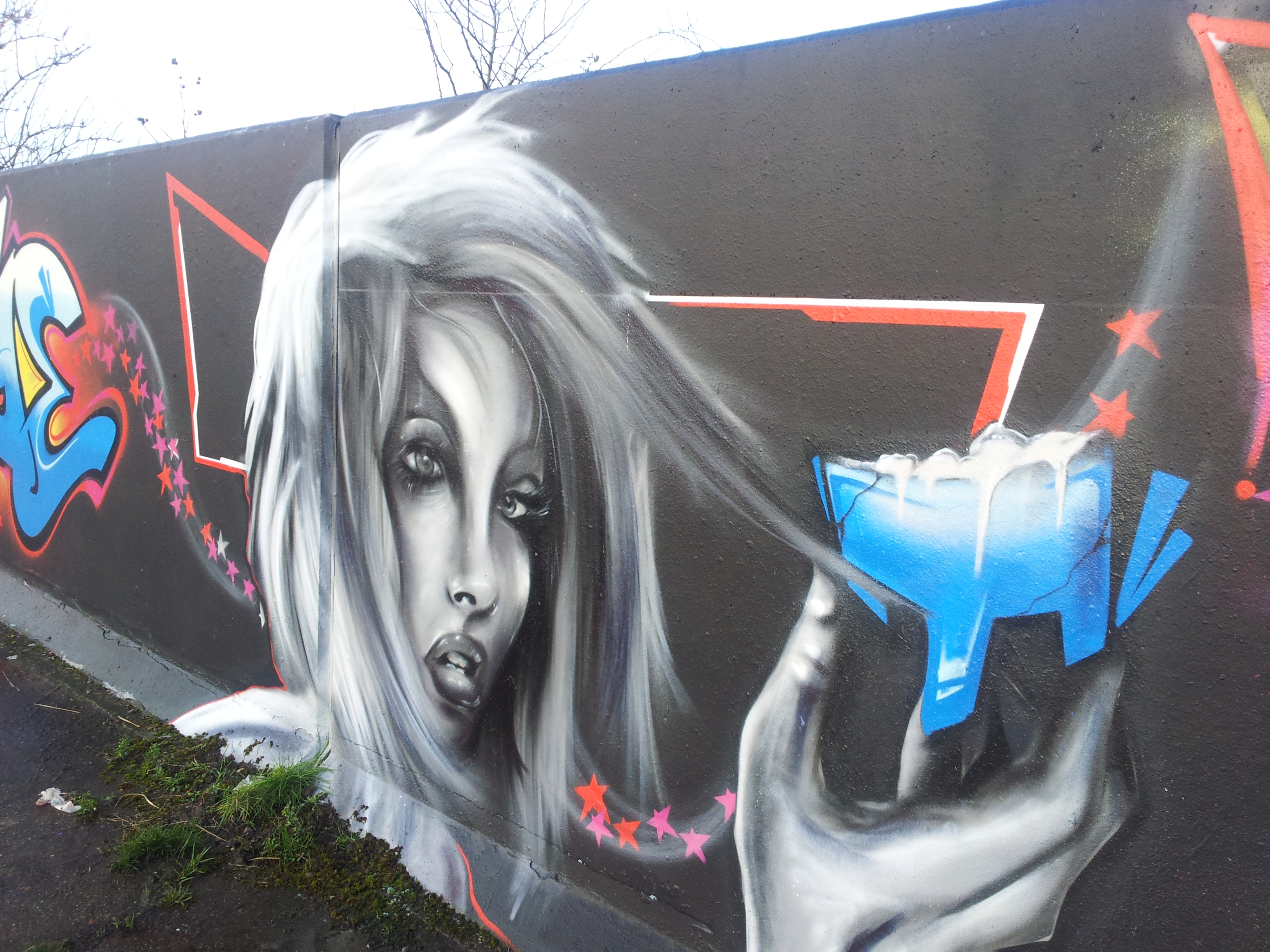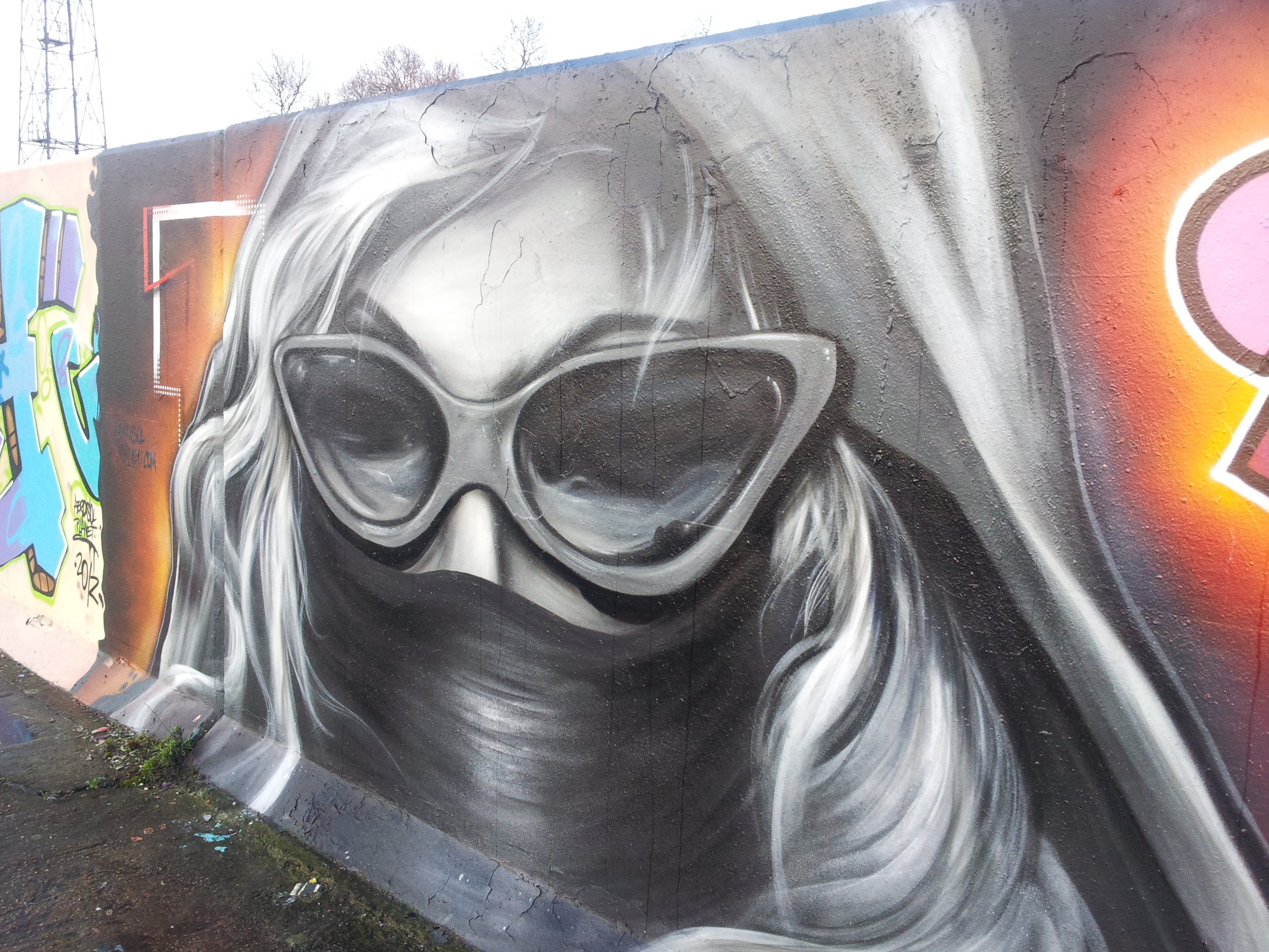 And these were only the ones after the point I decided to take photos – I just couldn’t be bothered to go back for some of the earlier ones, which were even better. It was pleasing to see that for the most part these genuine pieces of art had been left alone by the other vandals, even them recognising talent when they see it. There were also a couple of really clever ones where images of faces seen from afar were revealed up close to just be pixellated shades of pink. Really clever.