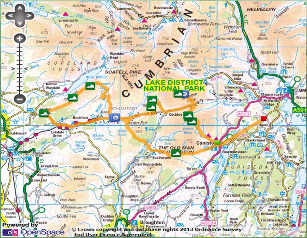 To add to the electronics, I also took my recent purchase of a SPOT Connect in order that I could track my route on Social Hiking and message home to say I was ok each night. I only had to change batteries once in this. Overall the beacons seemed to save and send ok, barring some instances where a few got missed. All of my messages got through. I did notice that some of the peaks I passed over didn’t register, and in one case one I didn’t pass over the summit of (Walna Scar) was picked up.