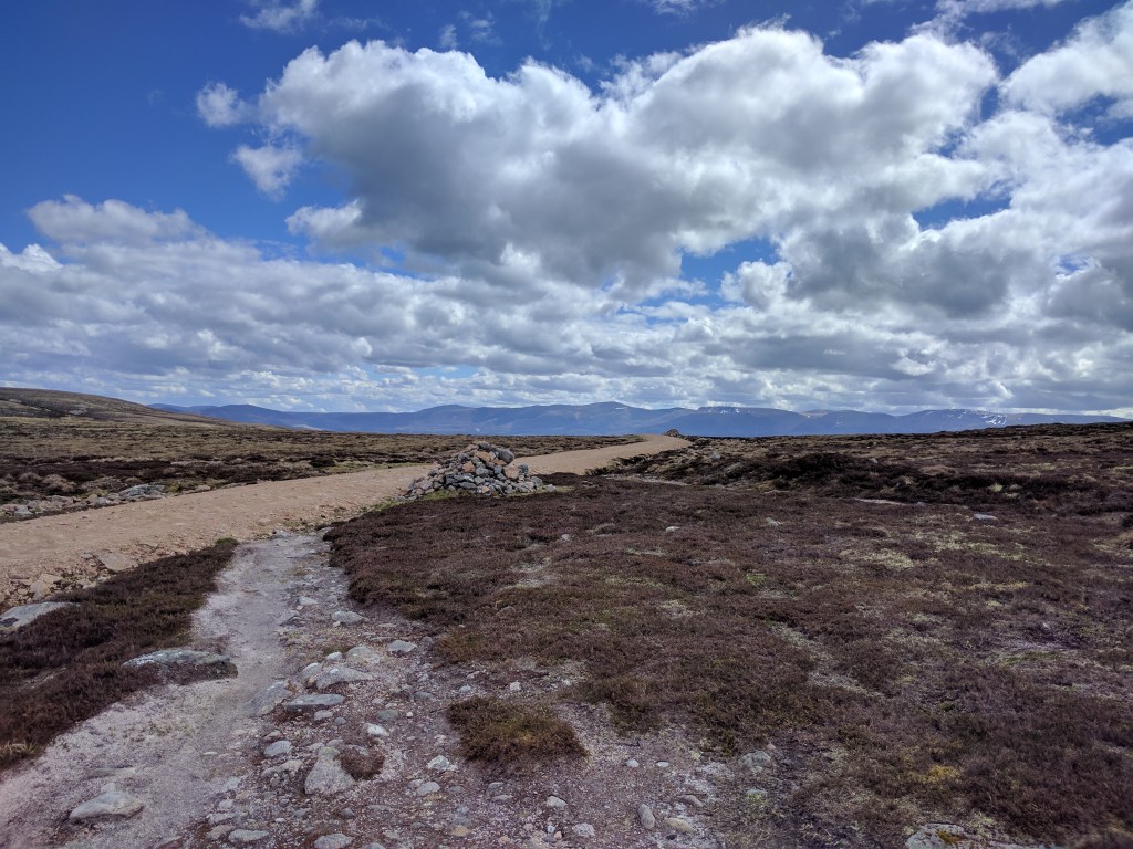 In 2018, days 4 and 5 had taken it out of me. I’d felt under pressure both days, having stopped short the night before, and added to the fact I was walking a route designed for two, by myself. I was starting to crack up. A rest at the Loch Ericht Hotel certainly helped matters, and I resolved to take it easy. After a pop up to Kingussie to get provisions early day 6, I started the walk from Dalwhinnie late, and only made it to just the other side of Carn na Caim.