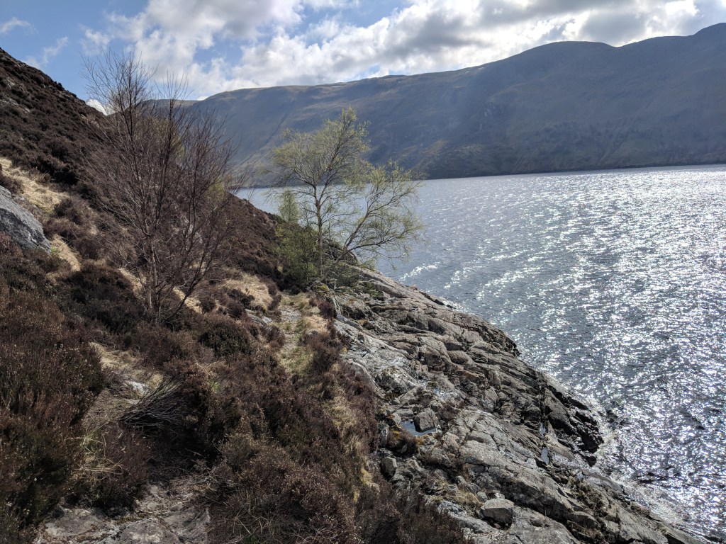 Day 5 that year continued to be a slog, making up lost distance to Ben Alder Cottage and then my FWA alongisde the loch itself, dicing with the treacherous rock on the loch side. My arrival at Dalwhinnie was a huge relief.