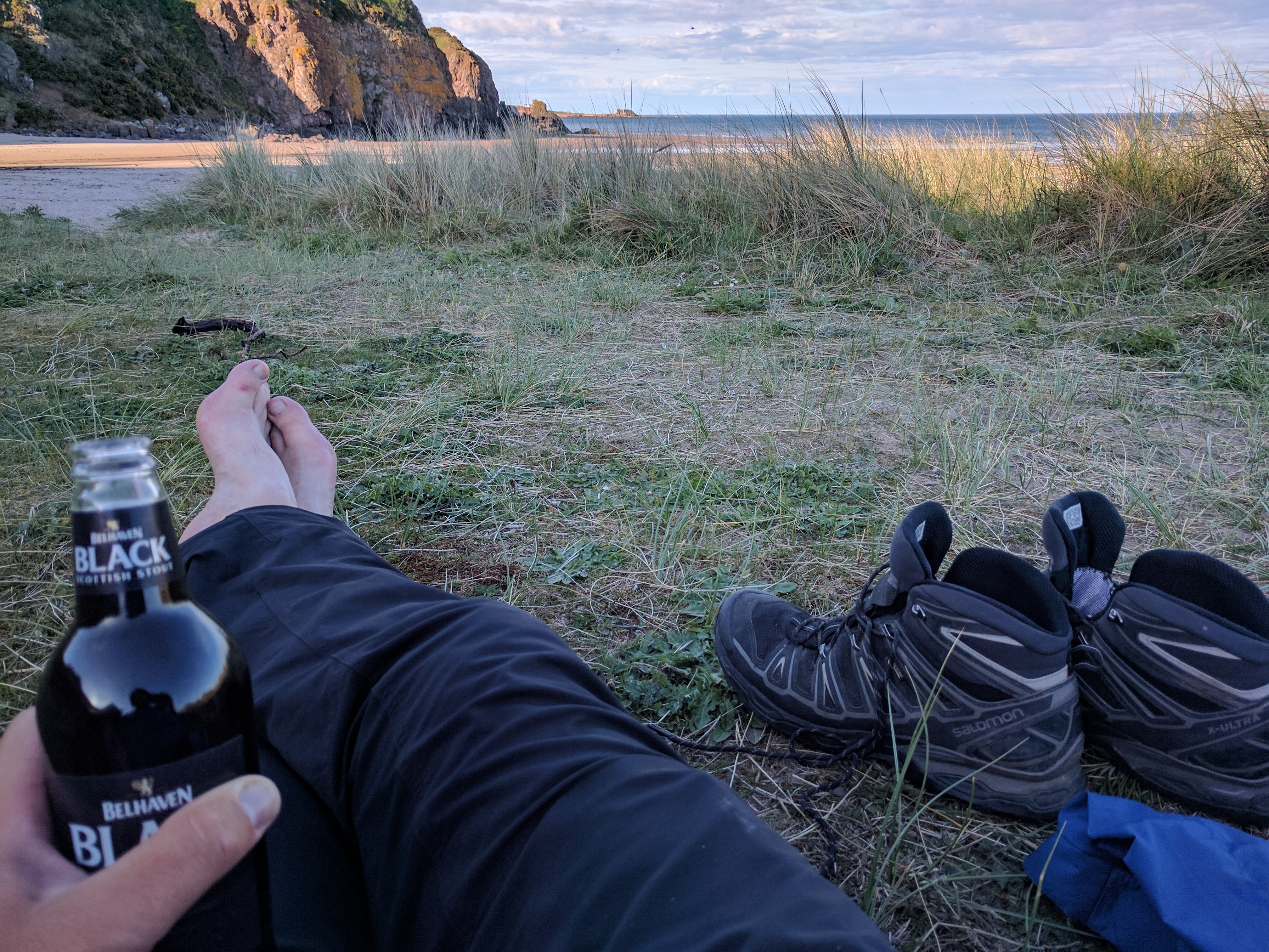 I did mull over that I could go into Stonehaven, fill my face, grab some supplies and then head for Dunnottar, which would use up the time. But I know me, and the relief of touching the sea was too great and I sought out a B&B instead.