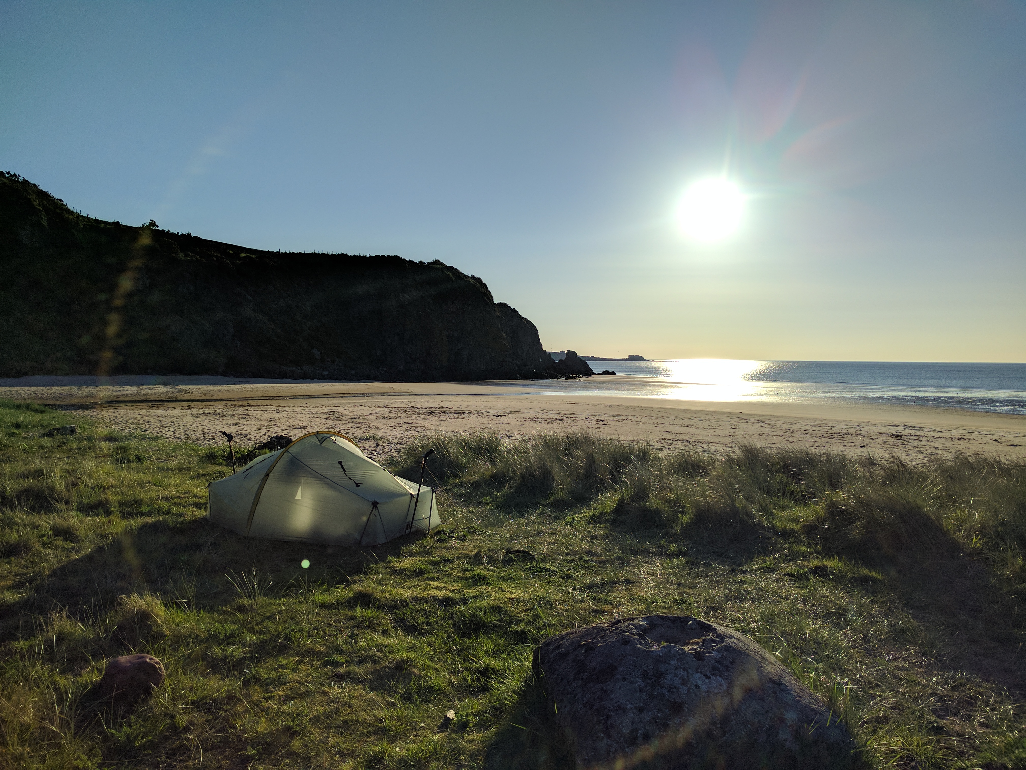 The far end of the beach afforded a flattish spot on grass covered dunes that was decently solid and above the tide line. I just lazed there until all of the local youths had given up whatever they were doing in a nearby cave and headed for home. The guy that locks the car park came over to me and I thought we were about to have an altercation, but he was just coming to tell me the car park was about to be locked up.