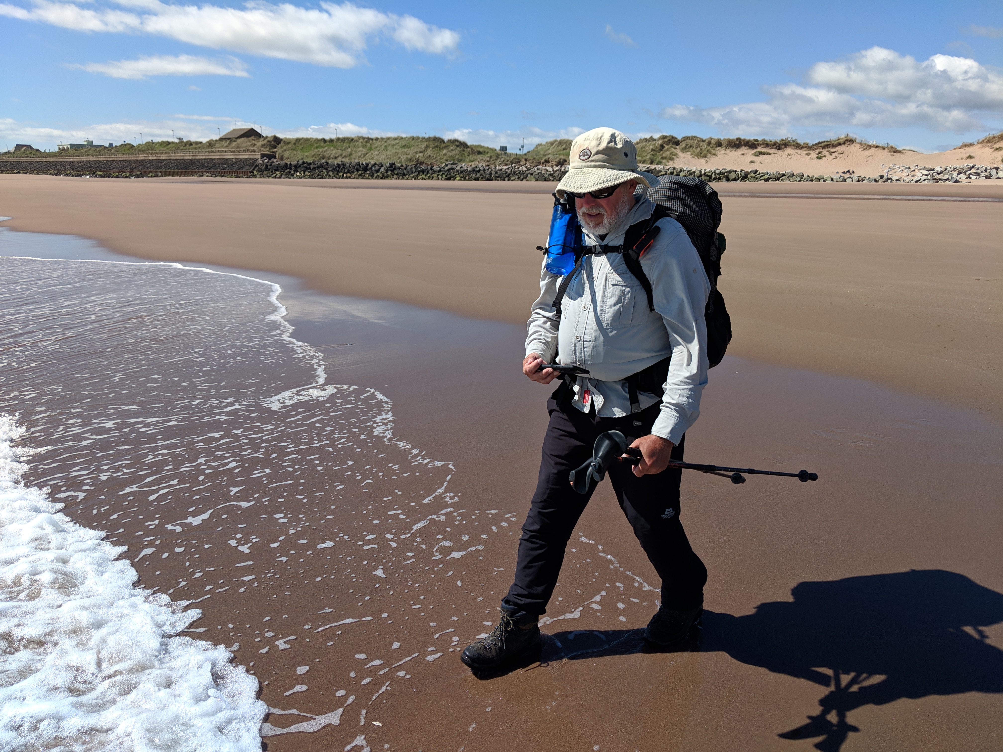Day 13 saw Paul and I in Tarfside, and our route to the coast followed the time-honoured pattern, albeit a day later than the main wave – the walk to Edzell and North Water Bridge, then the following day the final push to the coast. We opted for the beach at the northern end of Montrose itself.