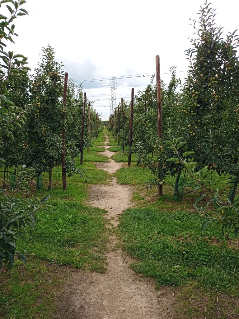 At the back of the churchyard, and the outlying “overflow” graveyard, I step through a gap in a tall hedge and into a large apple orchard.