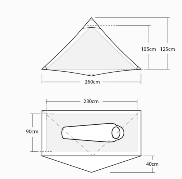 So, I put pencil to paper and sketched out the fly, marking the fit of various others inners – an old oooknest, a Lanshan 1 inner and my MLD Solomid XL inner, along with the tent’s own dedicated inner of course.