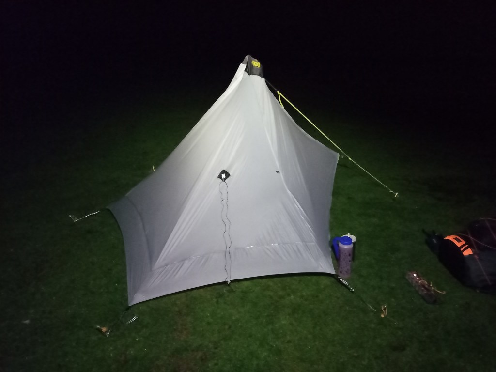 It blew quite noticeably in the night, and sleep was difficult to sustain. At one point I thought I’d lost a guyline, but this turned out to just be a trick of the moonlight.