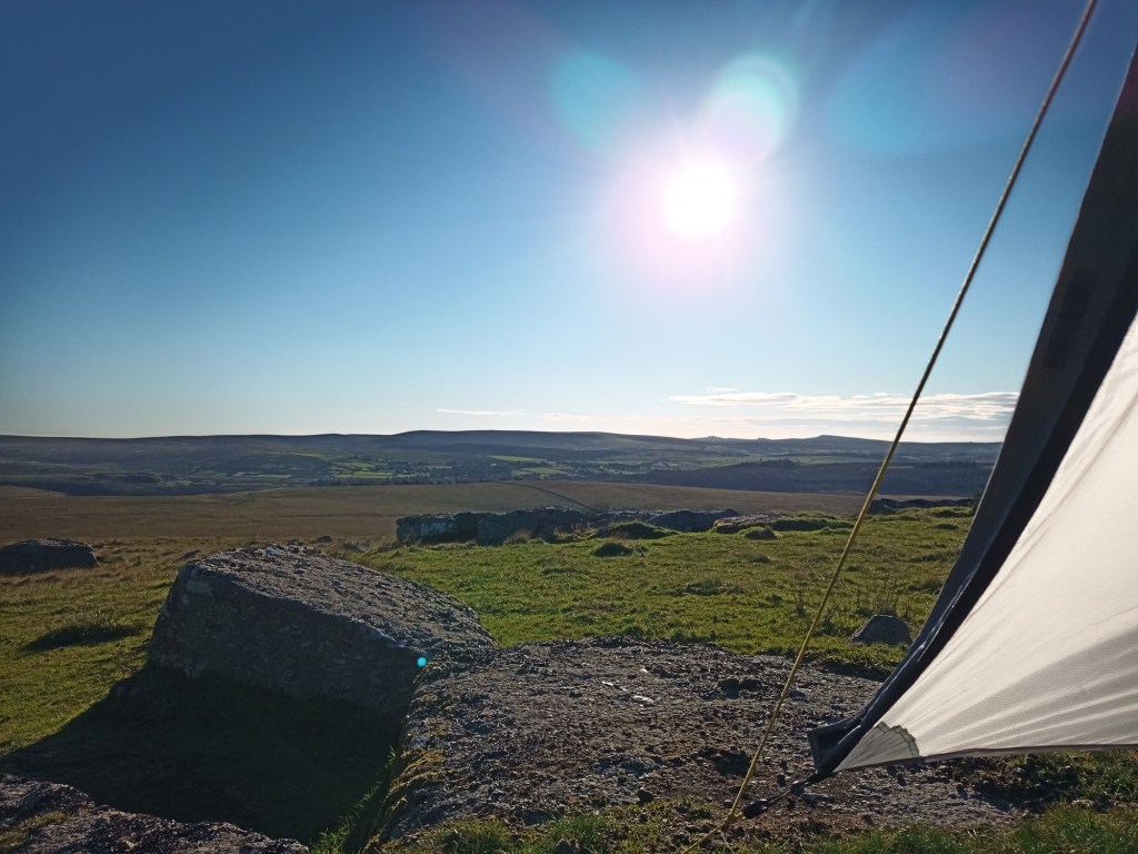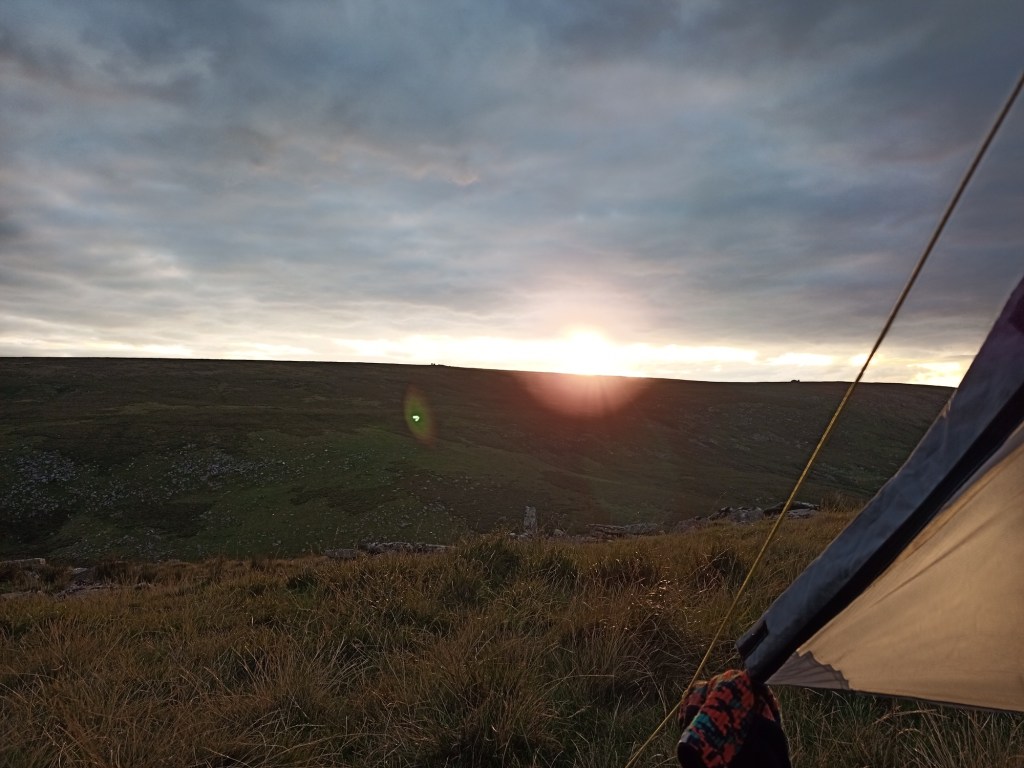 There were plenty of spots, but with a car park and easy track it was unlikely I’d have the tor to myself. And this was the night for a proper solo camp, it seemed to me. Ultimately, I decided not to risk it and carried on down the other side. I saw one more person, striding out over Greena Ball towards Cocks Hill, and that was it.
