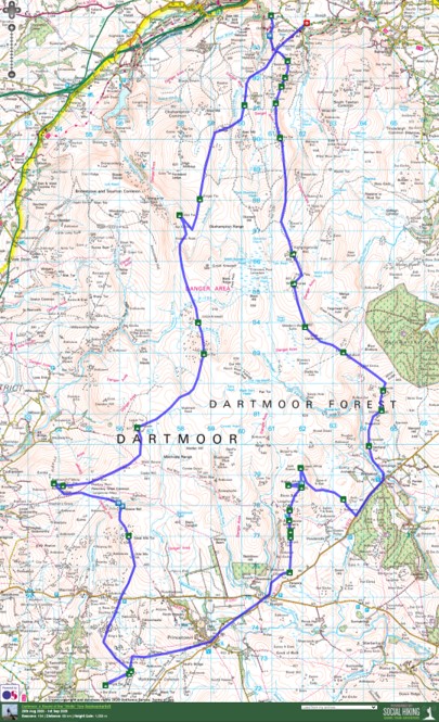 Starting from Belstone this would give me a walk of around 70km and 4 (ish) days of walking, which was about what I was looking for. That’s roughly equivalent to a section of the TGOC (which typically falls into 4 chunks). I also planned in an extra loop over Bellever to pick off some tors I’ve not yet done, but considered this optional – certainly when I thought about timings, it didn’t seem like it would be ideal, given where the permitted camping areas are.