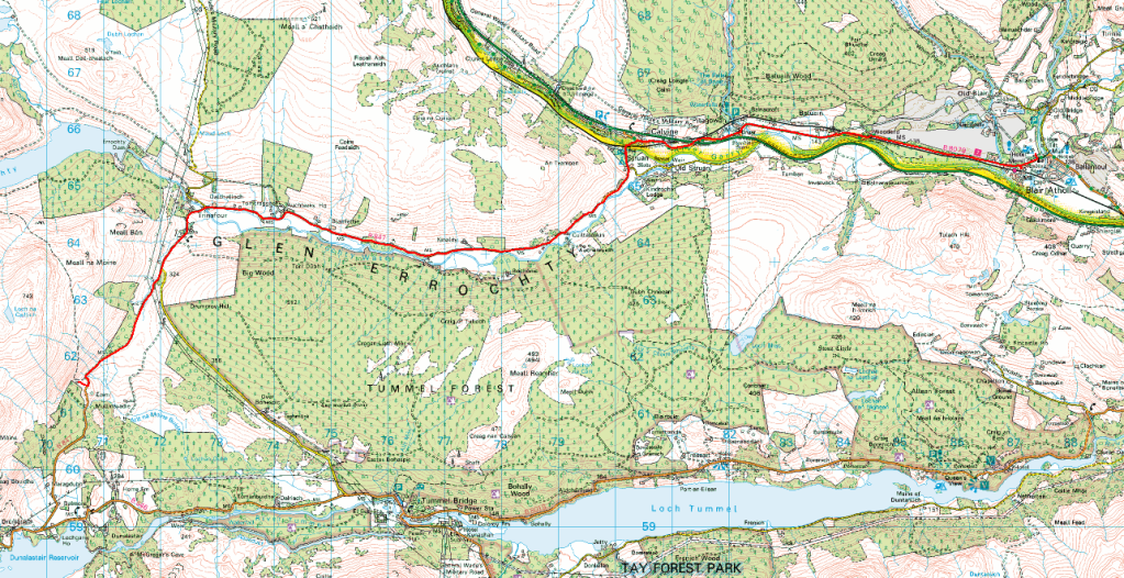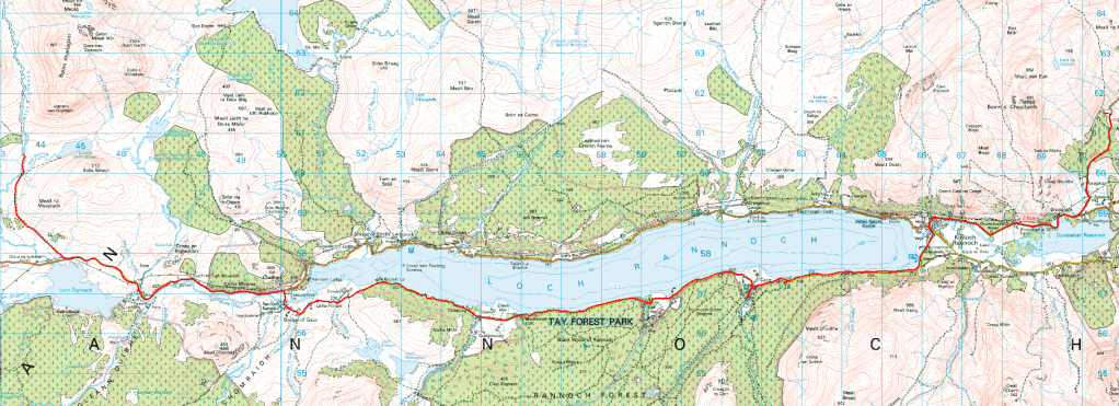Today we made a bit more than the 30km we were aiming for, largely because the 30km mark was at Kinloch Rannoch and there was nowhere we wanted to stop, so we just kept going. Hopefully we’ll reap the benefits of that tomorrow…