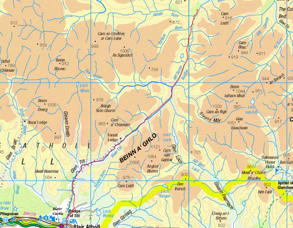 Key handed over, and deposit safely recovered, we set off for Old Bridge of Tilt and Fenderbridge, and a very easy day of navigation. Our vetted route has us going over the hills from Fealar Lodge to Braemar (tomorrow), but we decided early on in the Challenge that was unlikely to happen.