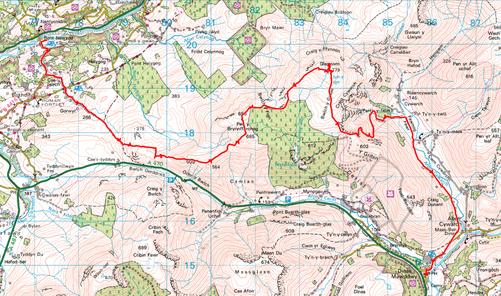And then I had the idea of approaching from the north rather than the south. With the Cambrian Way heading north from Mallwyd, the default thing is to assume an approach from the south so as not to have to double back on yourself, and I’d not really considered approaching from the other direction. Then I remembered my trip to the Arans in August 2019, and how useful the T3 bus between Ruabon and Dollgellau was.