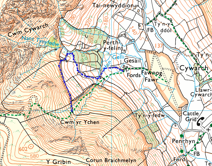 But first I had to decide whether to stick with my plan of heading towards Aran Fawddwy and then dropping down to pick up a couple of summits I’d omitted last time – Gwaun Lydan and Pen yr Allt Uchaf – or to head down over Y Gribin and drop into Cwm Cywarch for a shorter and easier day. The state of my body the day before largely made the decision for me: short and easy it would be. There was nothing to be gained from picking off a couple of minor and relatively uninteresting tops if it would compromise the main event later on. I had a lot of ascent to do in the afternoon anyway.