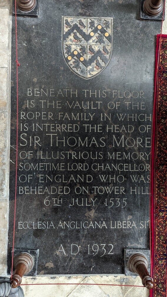 Along the road to St Dunstan’s Church. Here lies the head of St Sir Thomas More, who Henry VIII had beheaded. His daughter was married to a Canterbury man, and she managed to wangle his bonce and bury it here.
