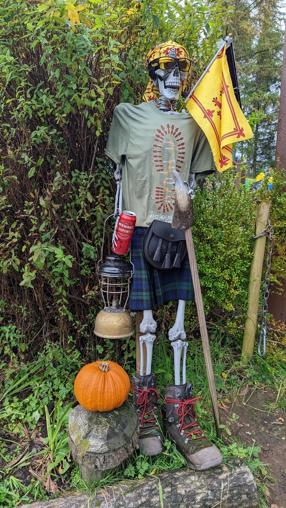 Then under the banner and onto the Way itself, leading fairly quickly out of the urban and into countryside by way of Mugdock Park. Allander Water kept us company to our left. We approached Carbeth and found this chap.