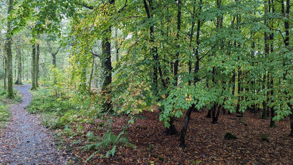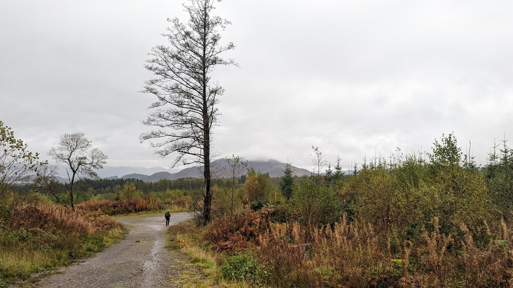 Once we turned off into the forest the rain seemed to be less bothersome and we emerged from dense forest to a view of Conic Hill. This we’d already decided we probably wouldn’t bother with in these conditions, and seeing the top wreathed in cloud merely confirmed it – the main reason for going up made it pointless.