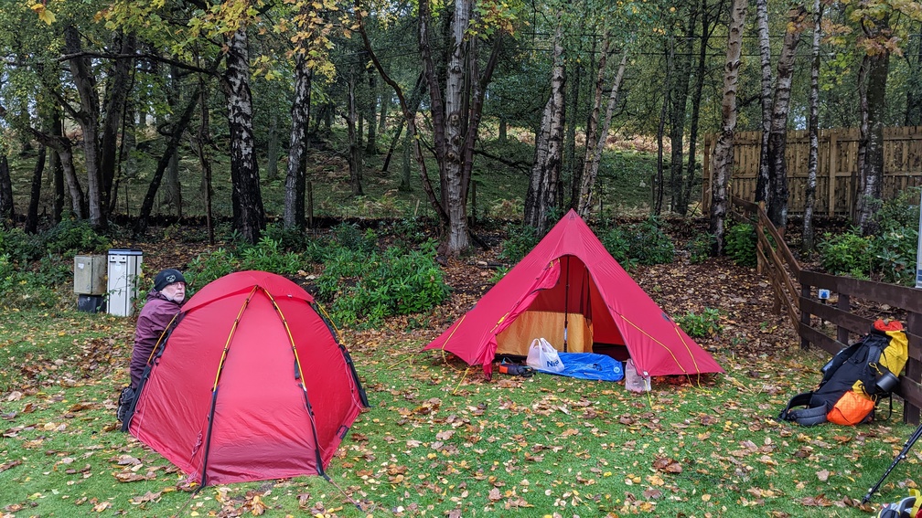 It started raining shortly after this, at which point thoughts became very much focused on tonight’s camp. We’d intended to stop at Drymen Camping but hadn’t actually made any arrangements. While we took shelter in the facilities barn, Paul booked us in over the phone while I discovered which toilets were open by a process of trial and error.