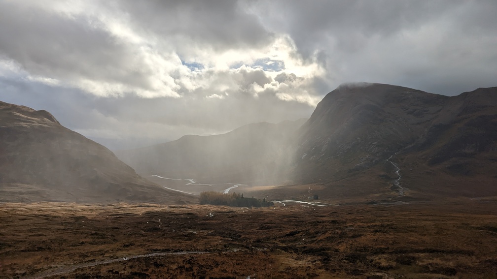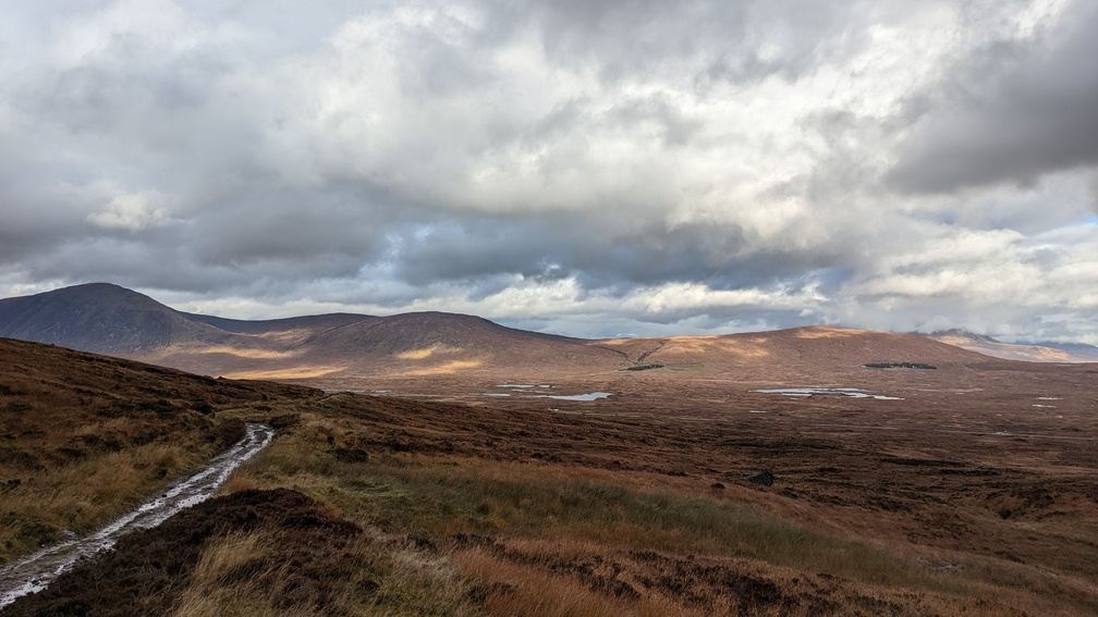 It wasn’t a long stop as we were lured by the promise of another early finish, and specifically beer. The next stretch brought us out to the western end of Rannoch Moor.