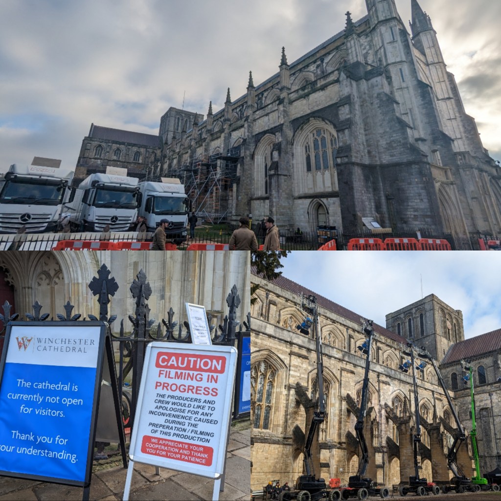 At the cathedral, where the trail starts, there were a load of lorries with “Panalux” on the side, and barriers across the main entrance. Clearly something was being filmed, and snippets of other people’s conversation suggested it might be the next series of The Crown – I’m guessing it’s Diana’s funeral, if so. Around the other side leading to the Undercroft, a row of cranes were shining lights through the windows.