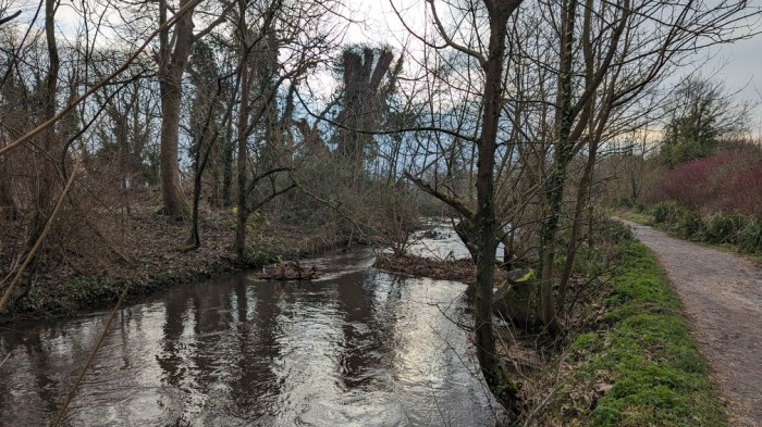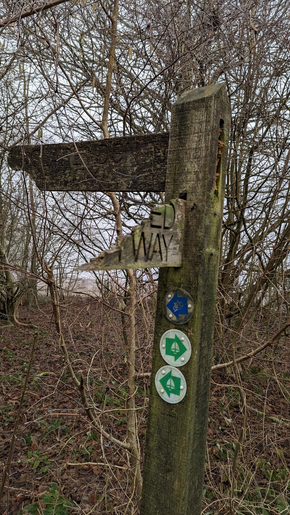 On the other side of the footbridge, I was spat out into a housing estate with a waymark pointing completely the opposite direction to the OS map. I followed it for a hundred yards or so, then reviewed the gps again – sometimes the way a road curves means it’s easier to see which is the right way by going a little further on from the point of confusion. Not liking it, I retraced my steps to stick to the map route, which after all was what I was primarily using to navigate. Of course I could have used the printed map by Nick Hill, which seems to be the only real guide available to the walk, and which I had stashed in my pack. This would have shown me the error I was about to make. But it wasn’t as convenient as looking at the OS map on my phone.