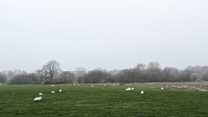 This path brought me down to the Test valley where the way across the concrete bridges was pretty natural. Here I found a whole load of swans just sitting in an otherwise empty field.