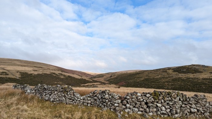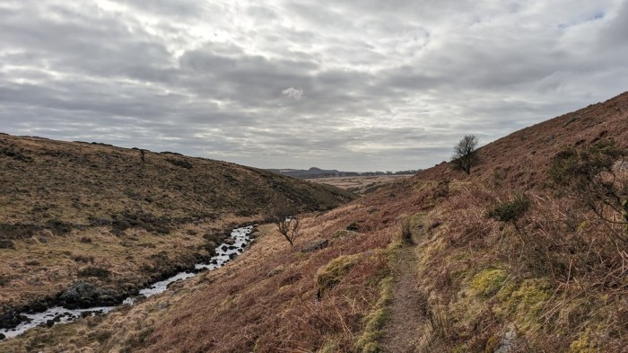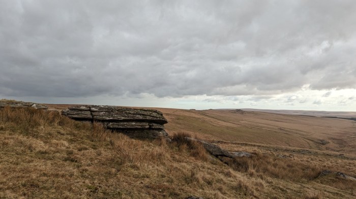 Lunch done, and feeling like I wouldn’t need to eat for several days, we headed back to Paul’s. Paul was working next day, Monday, so I headed out solo for a day walk from Okehampton, unencumbered by my big pack. Although it was just as cold as the day before, I could make this up as I went along – it was largely about staying out of Paul’s way for a few hours.