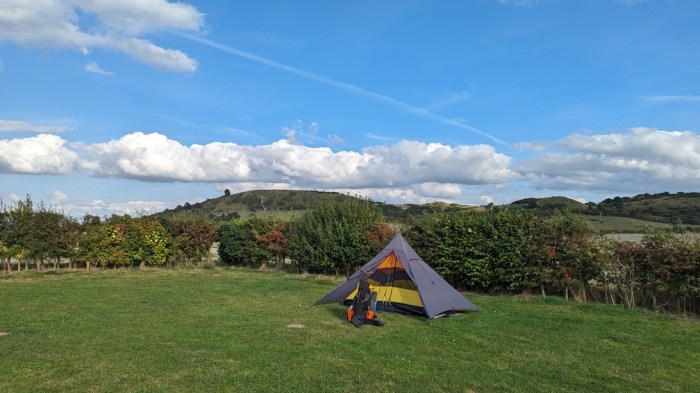 It wasn’t the flattest campsite with the most level spots either being already taken, or uncomfortably close to others, on what was a pretty sparsely populated site overall. I settled for a spot in the corner of the far field, ironically the nearest possible point to Ivinghoe Beacon I could have pitched.