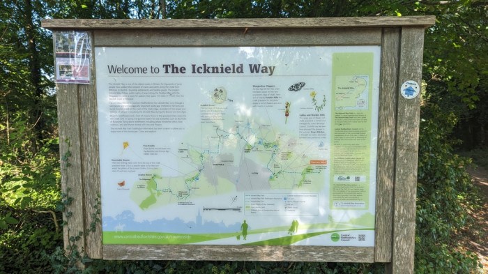 Back on the hoof, and the route truly split – with the Toddington alternative branching off to the left. Here the info panel provided by the Icknield Way Association was genuinely helpful (as they continued to be from here on in).