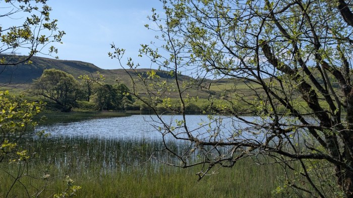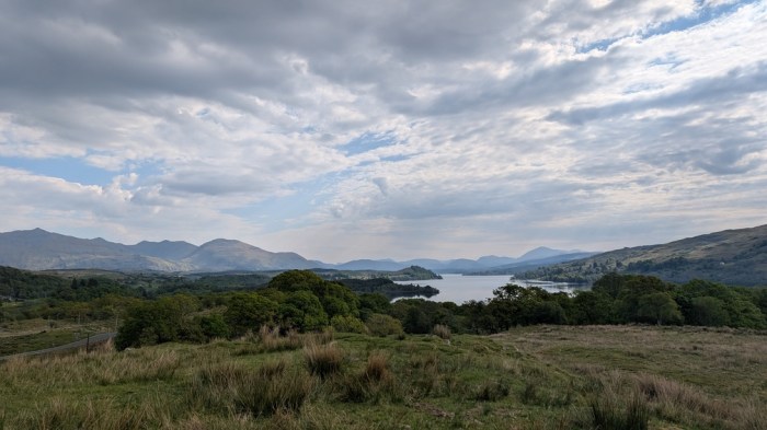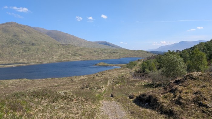 It was an easy decision to make – one involved climbing up into the forest, the other didn’t. I’d have done it if I’d have been on schedule and looking for my first night’s camp spot, but with ground to make up, an easy surface to walk upon, and plenty of shade and loch views, I decided to stick with the road. It would save me about 2km, I calculated.