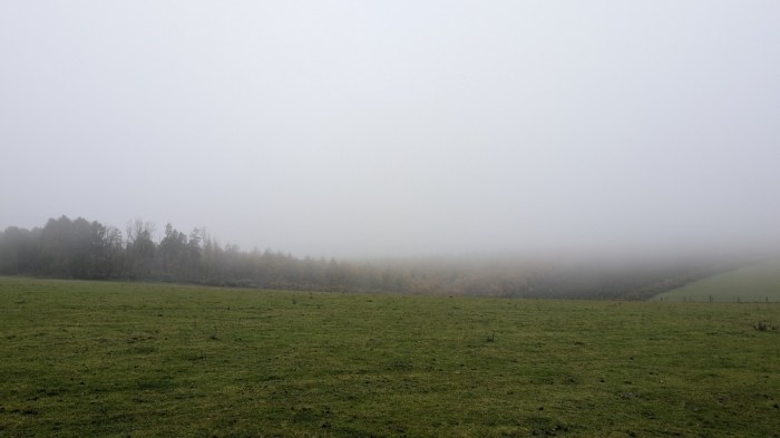 Already quite damp at this point, I continued on, investigating every patch of trees for adequate shelter, and finding none good enough, I continued onto Harting Downs. My jacket was already wetting out and I could feel my base layer getting wet. I was also starting to feel cold when I stopped.