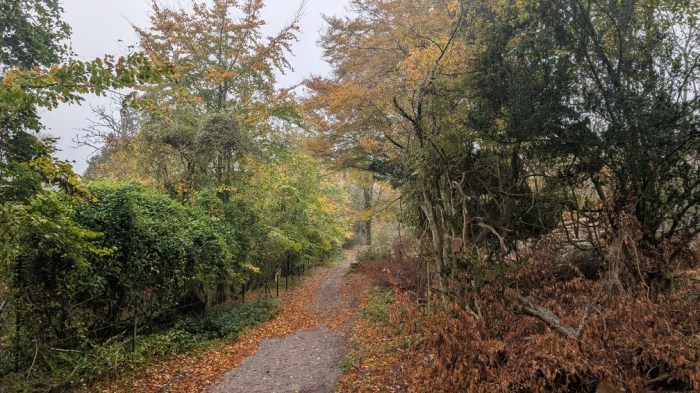 I took shelter at the entrance gate to Telegraph House, using what little protection a few thinly-leaved trees provided. It was here that I saw that the forecast had changed, and I could expect another hour or so of heavy rain.