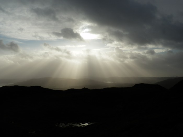 We climbed on and up, the promised rain holding off but the wind strengthening as we got higher. False summit after false summit nevertheless led us to the eventual top and a struggle to remain upright and on the same patch of ground. To the south, shafts of sunlight broke through the sombre sky and … Continue reading Lakes or Bust
